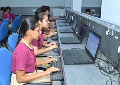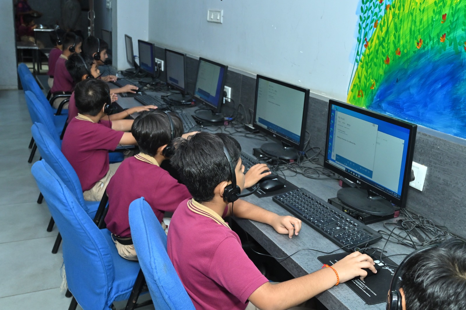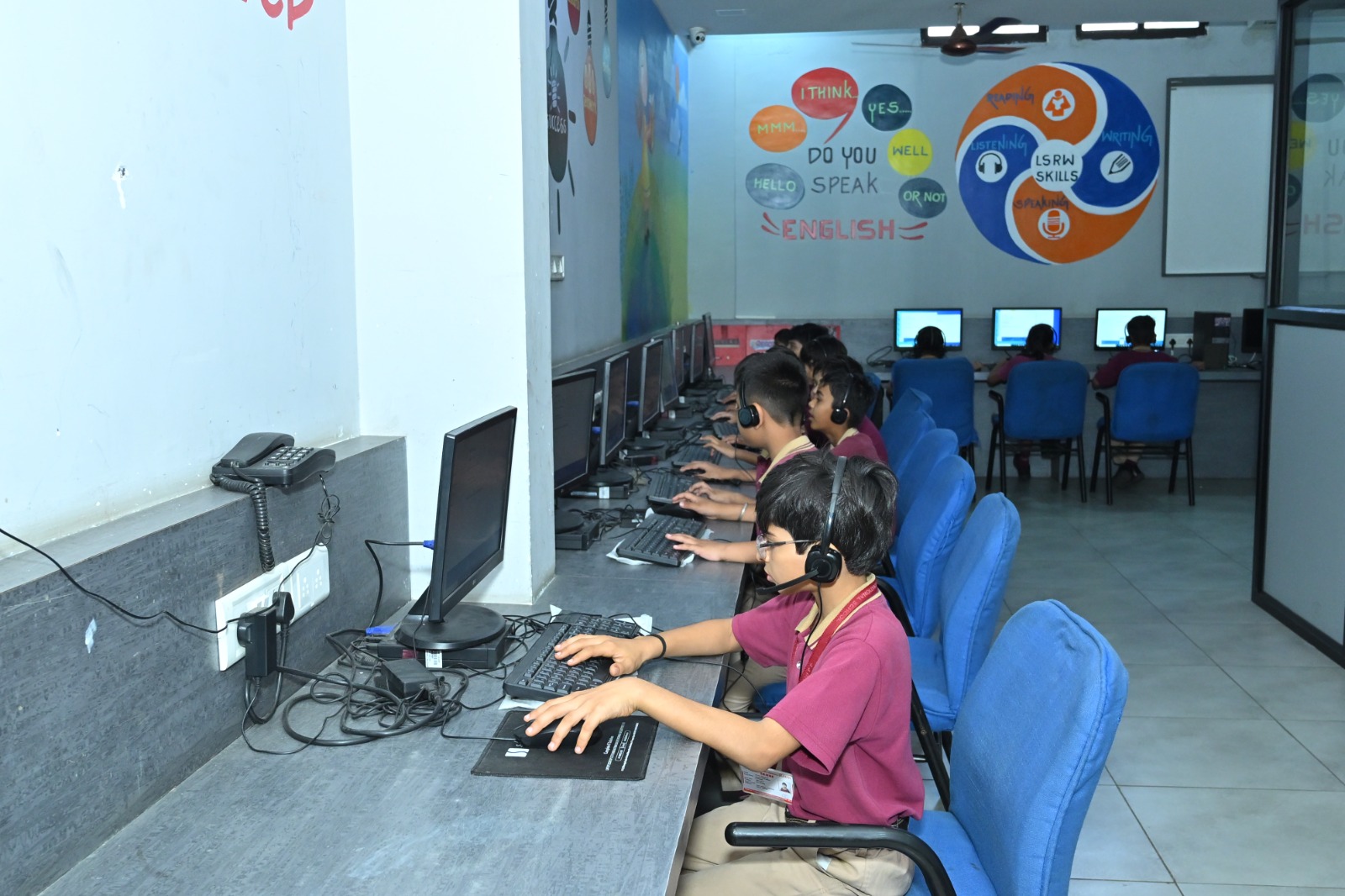 A well-equipped English Language Lab in a school is a modern, technology-driven learning space designed to strengthen students’ communication skills. Each student has access to an individual computer station fitted with high-quality headsets and microphones, enabling focused practice in listening and speaking. The lab is furnished with interactive language learning software that covers grammar, vocabulary, pronunciation, and writing modules, supported by multimedia resources such as e-books, videos, and audio recordings.